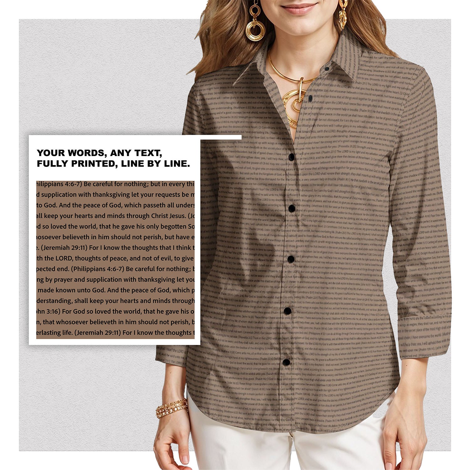 Your chosen scripture stays sharp and vibrant through every wash and wear.