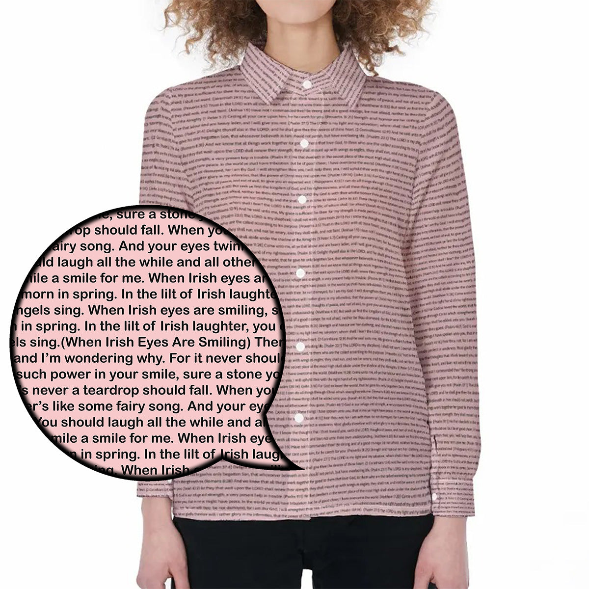 All-over print covers every inch of fabric in lasting, high-resolution text—no fade, no peel