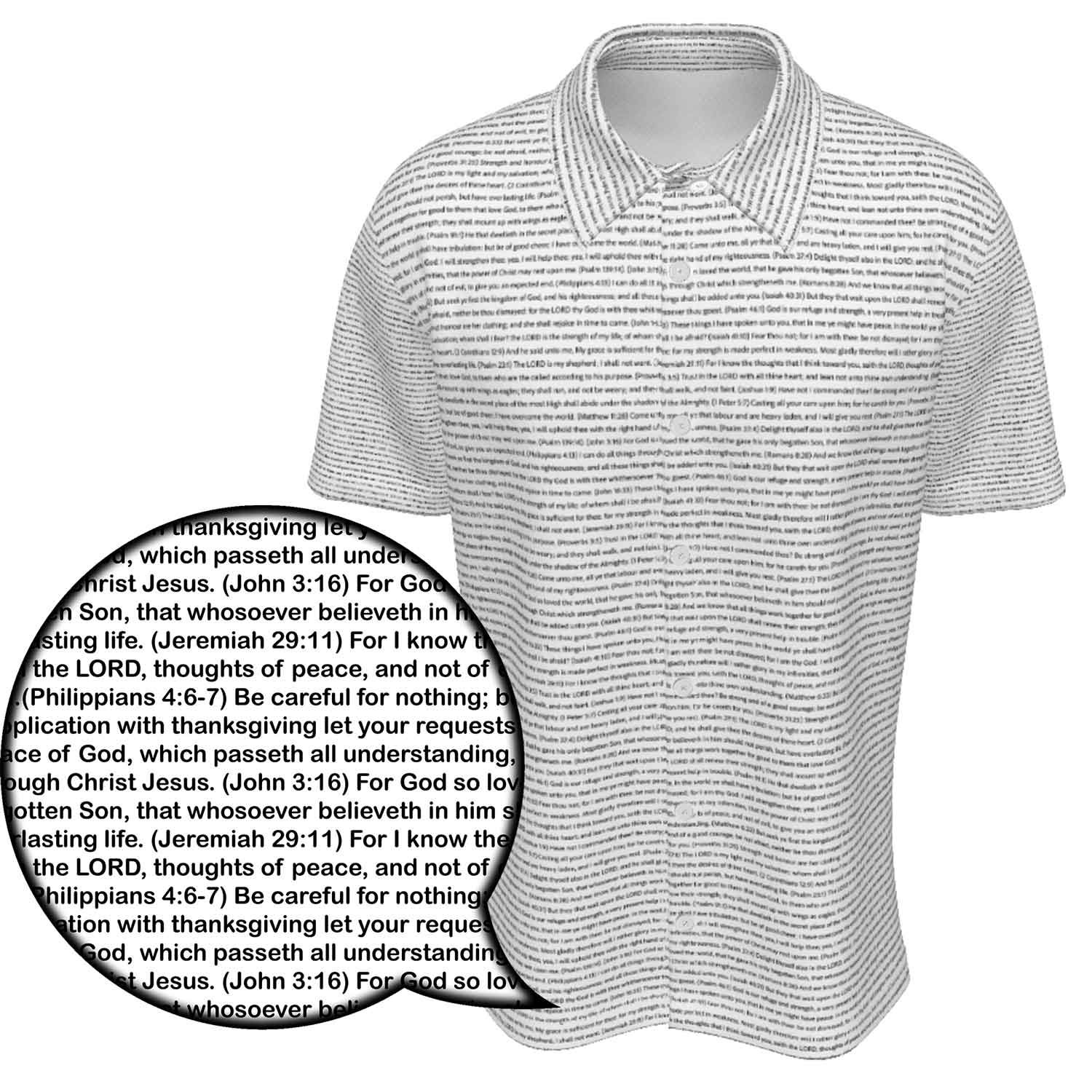 Your verse is printed in sharp detail across the shirt—easy to read, wash-safe, and built to last