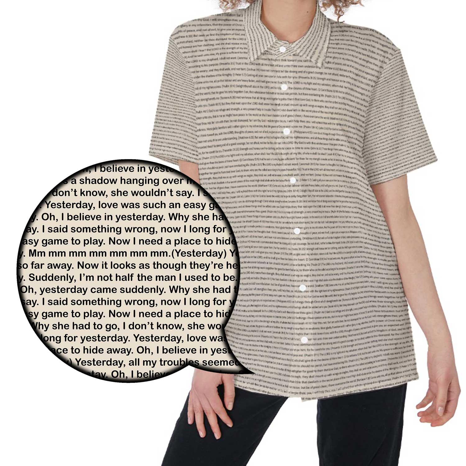 Prepare to be impressed! Our signature dye sublimation printing technology ensures every single word of your chosen prose is rendered with breathtaking clarity and legibility. The design will beautifully cover the entire shirt edge-to-edge, with no distracting gaps or white lines – just pure, stunning prose.