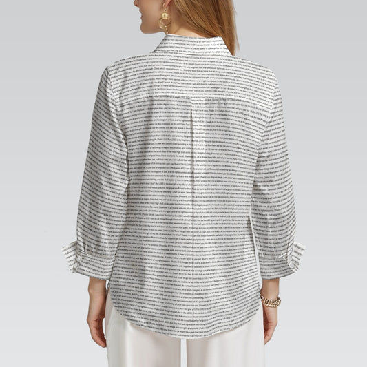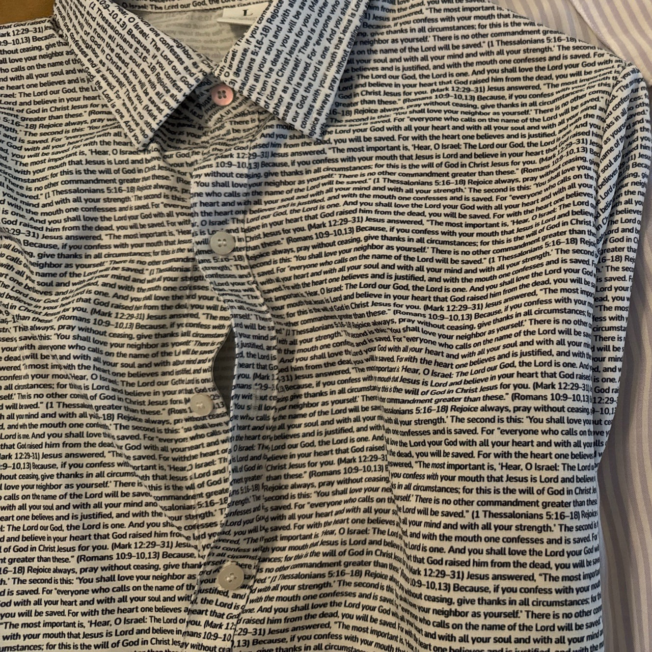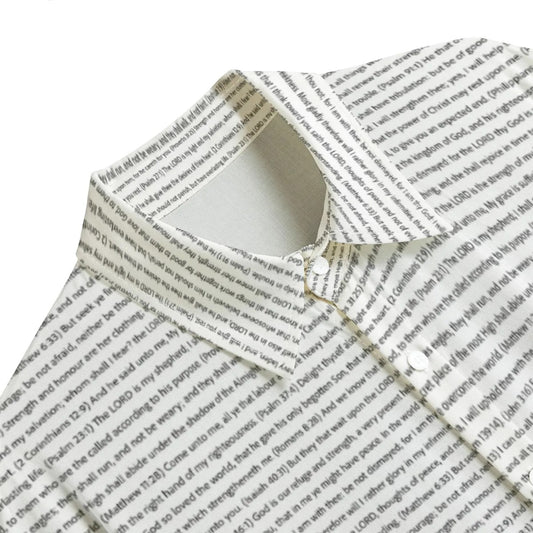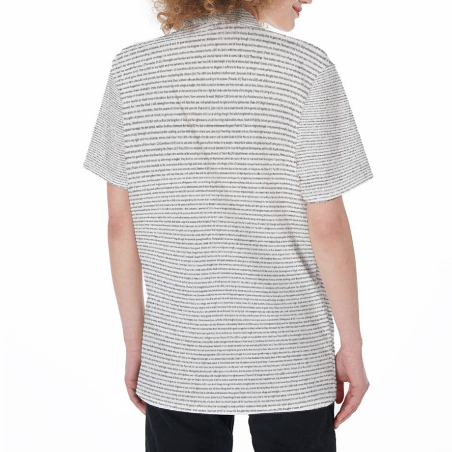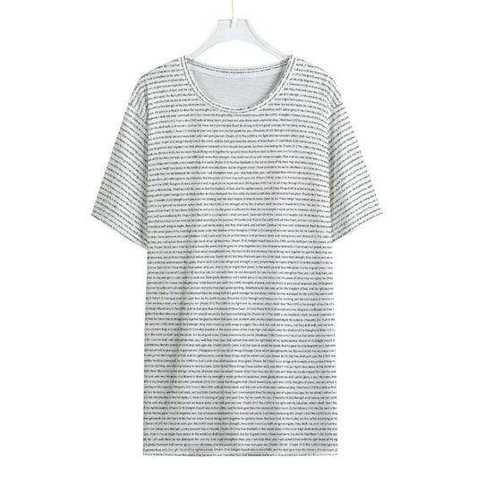 Your verse is printed in sharp detail across the shirt—easy to read, wash-safe, and built to last