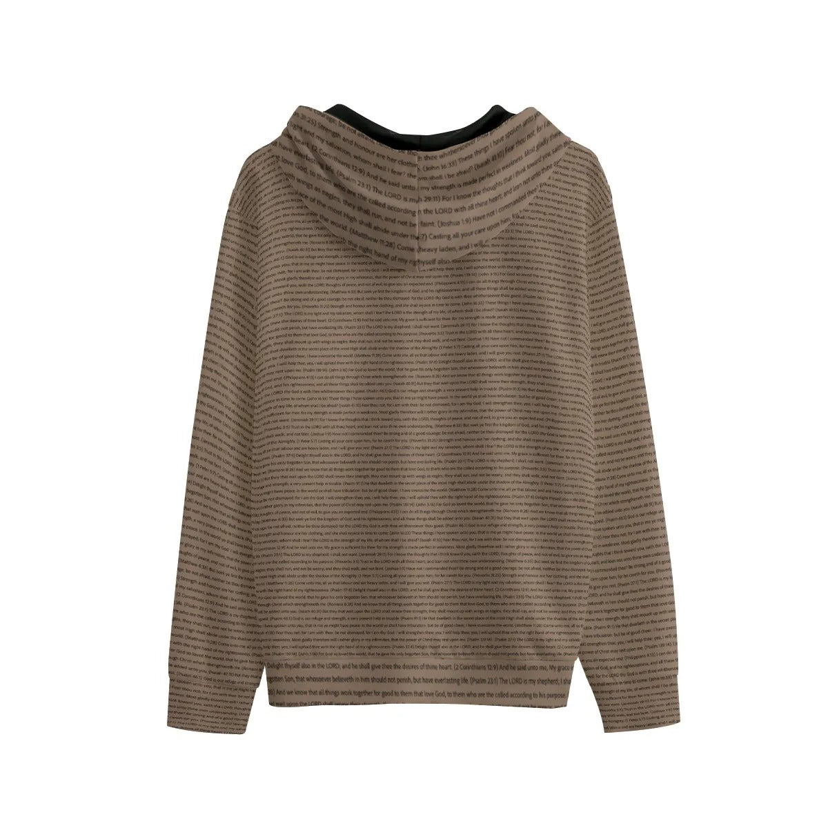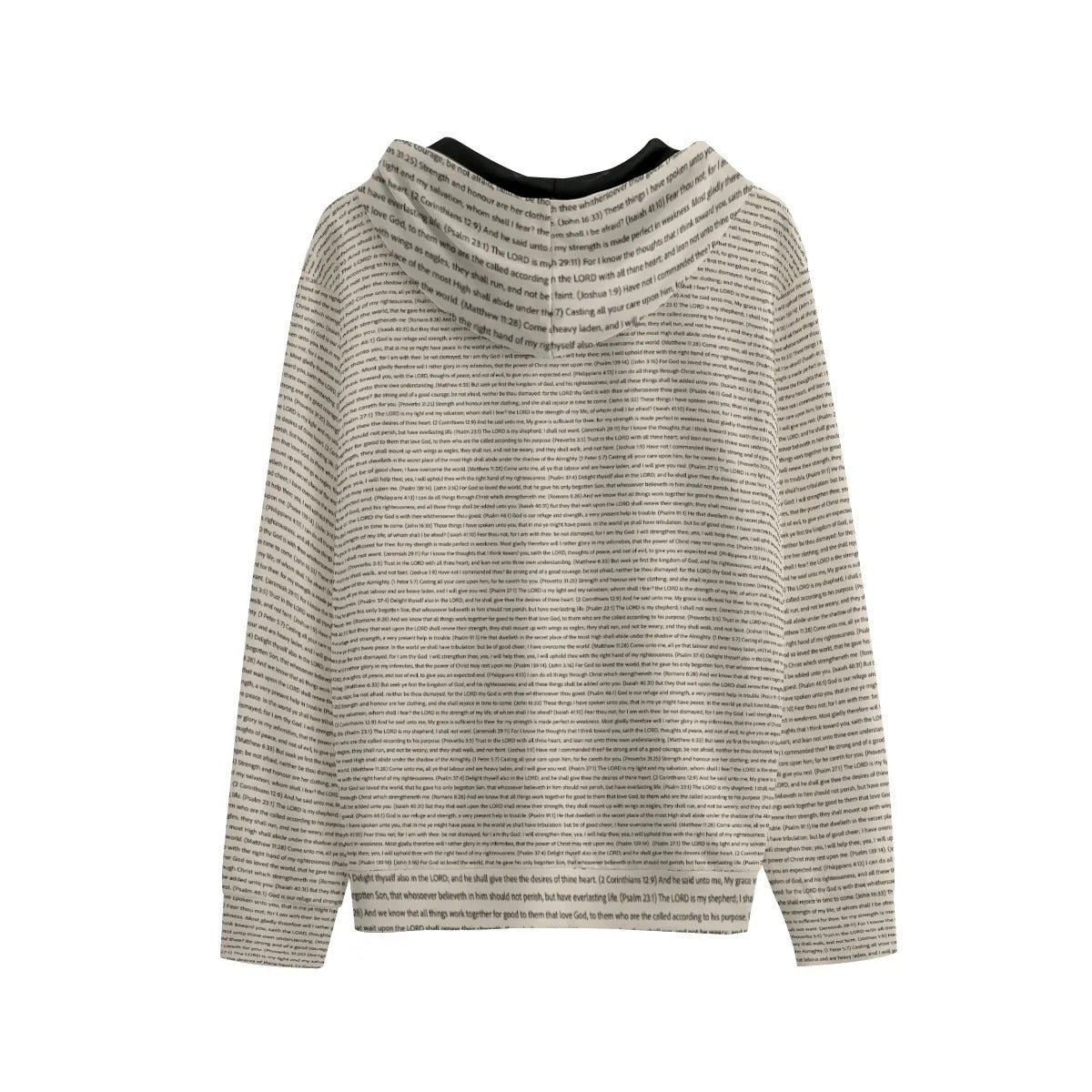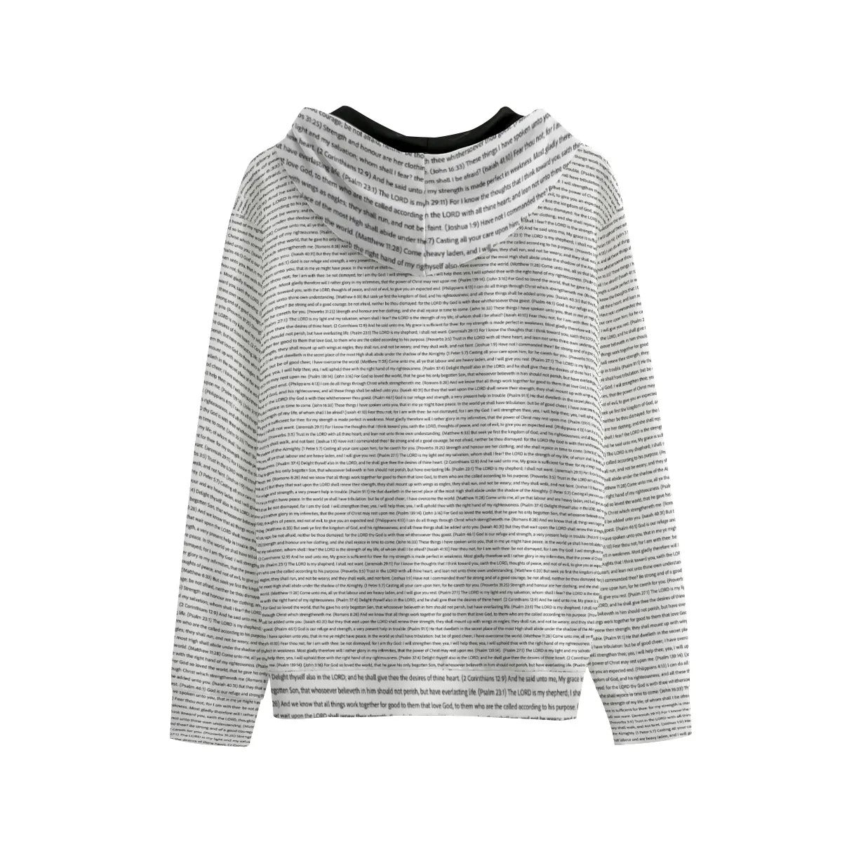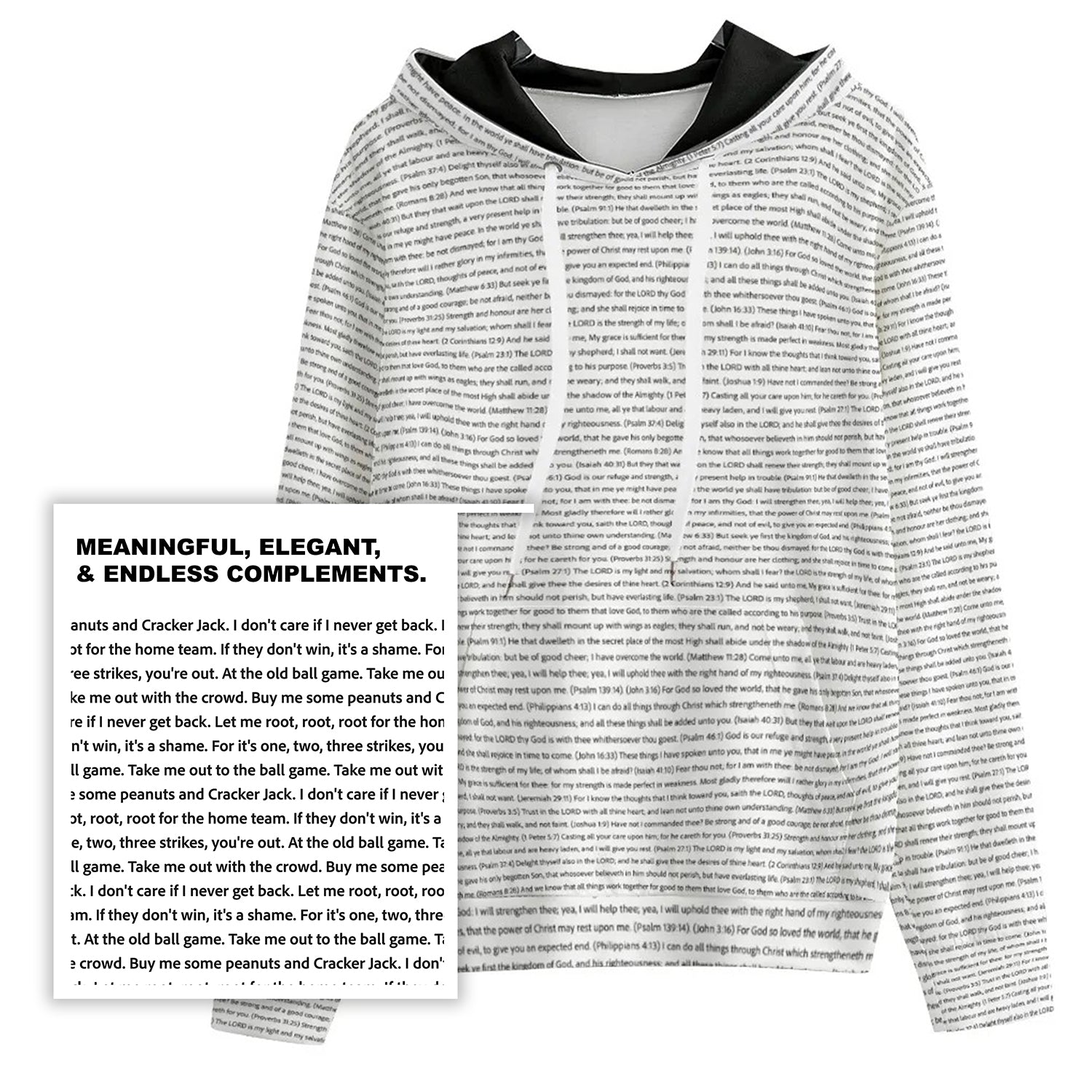 Song lyrics, verses, or text printed clearly across the hoodie.